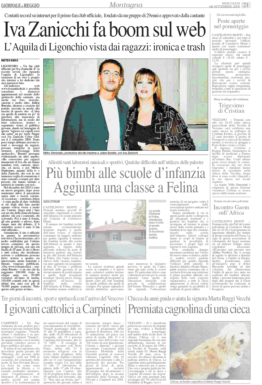 dopo l’apertura del Fans Club e il successo avuto in questi primi giorni (raggiunti subito i 40 iscritti), il Giornale di Reggio il 14 Settembre, ha pubblicato un’intervista che parla esclusivamente del sito e del fansclub.